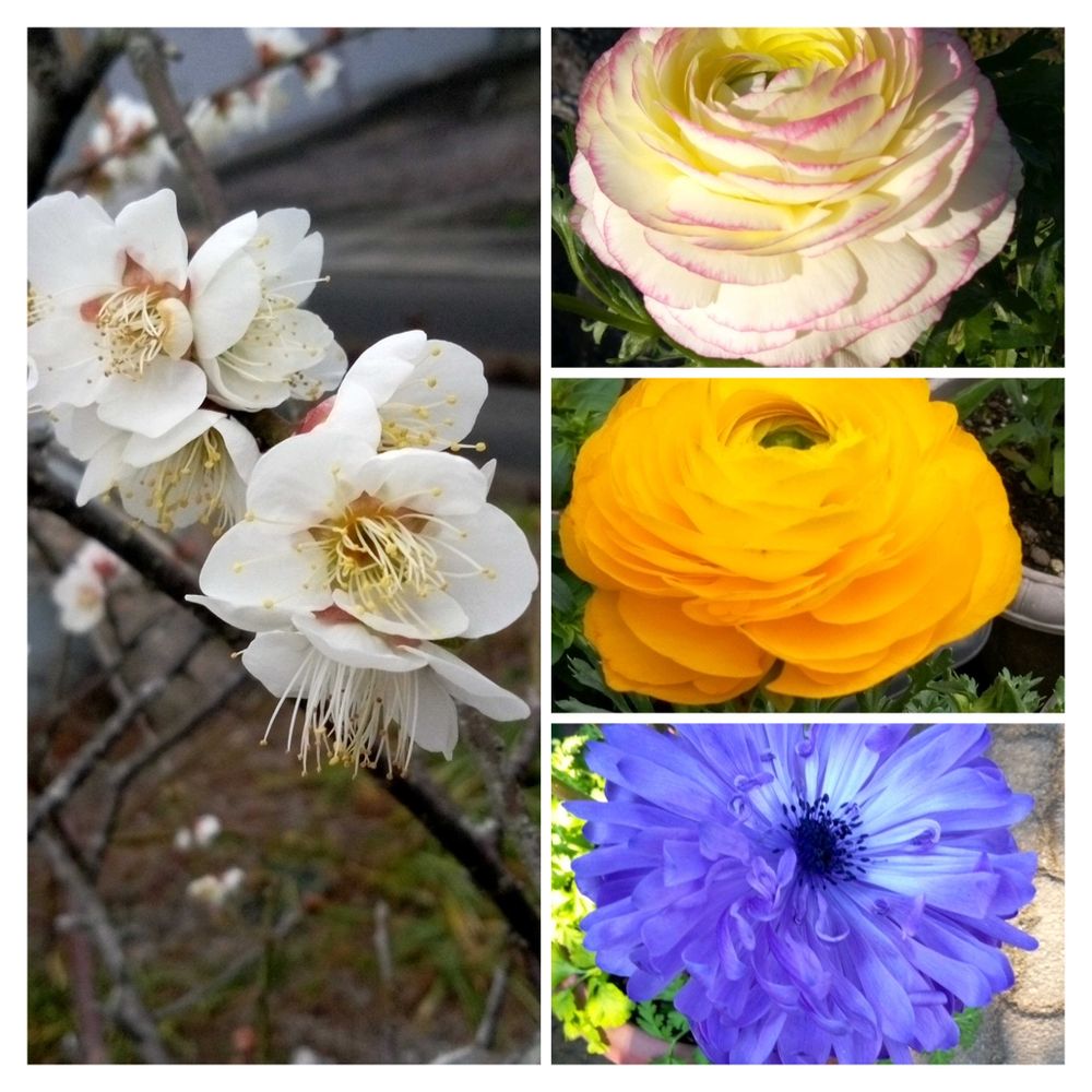 右・ラナンキュラス💗🤍💛とアネモネ💜💙