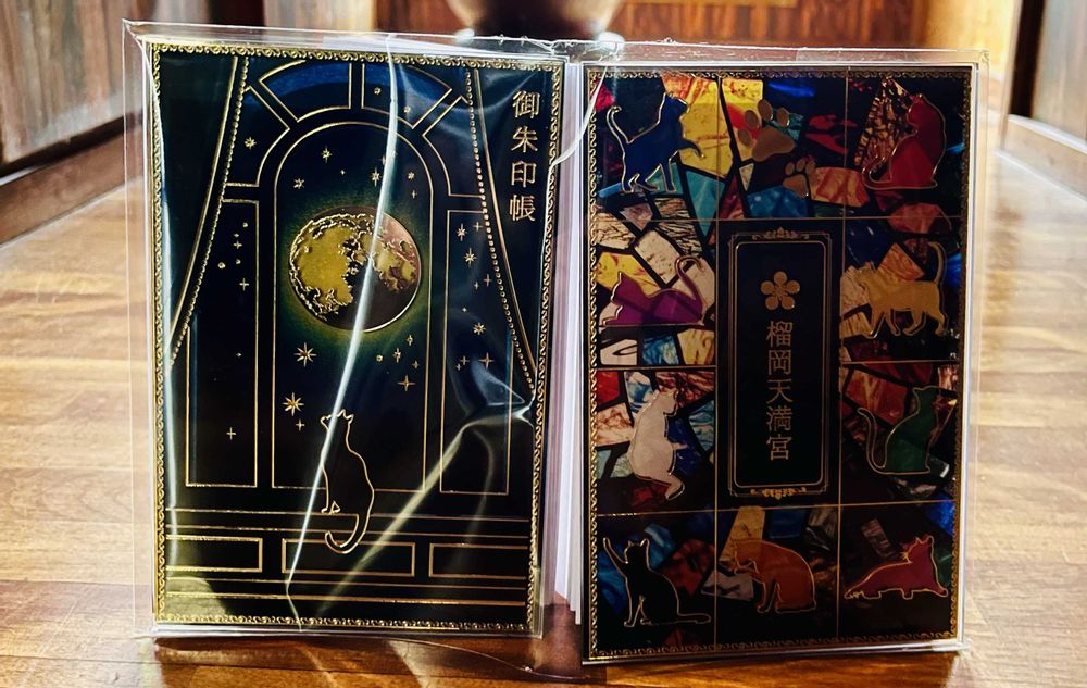 今日は番外編で、22日でにゃんにゃんの日という事で、榴岡天満宮で限定の夜月猫御朱印帳を投稿します✋ステンドグラスの様な素敵なデザインで凄く気に入っています🥰