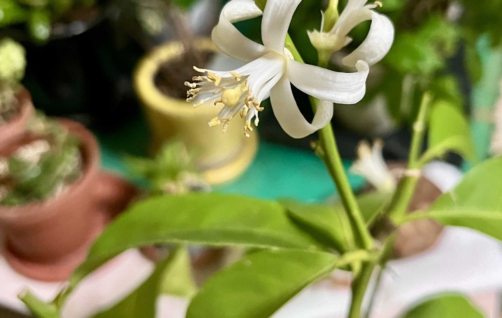 2枚目は、こちらも最近入手した、レモンの木が初めて花が咲きました✨後は早く実がならないか待ち遠しいです😊