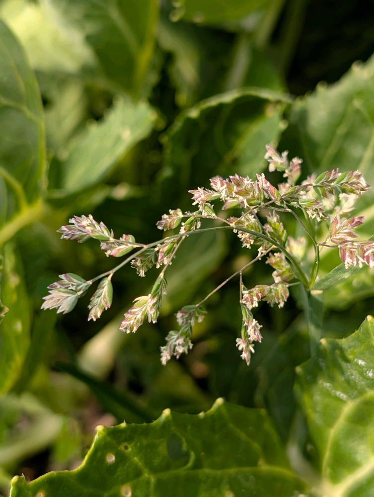 姉の畑のビニールハウスの中に、立派に咲いたスズメノカタビラがありました♪