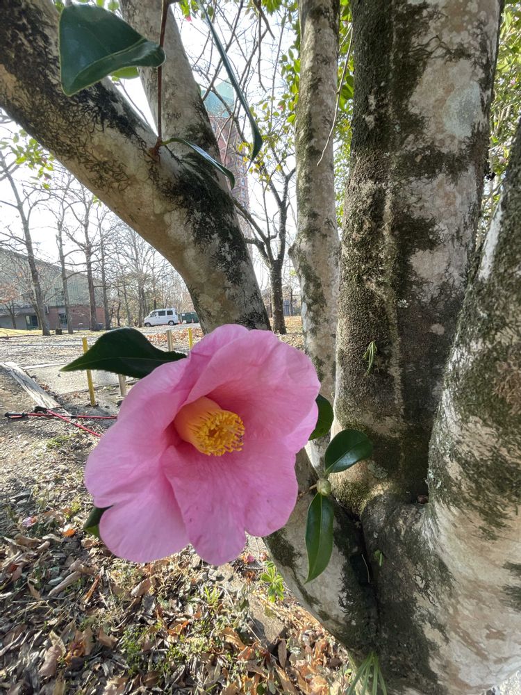 そばに大学の寮の建物があり、そこにもピンク色の椿が植わってましたが少し花が小さく感じました🌸