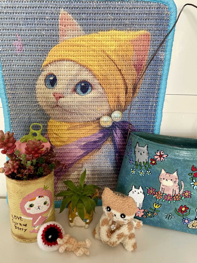 背景の猫絵は爪研ぎですが何故か爪を研ぎません…同じ仲間だからでしょうか😽