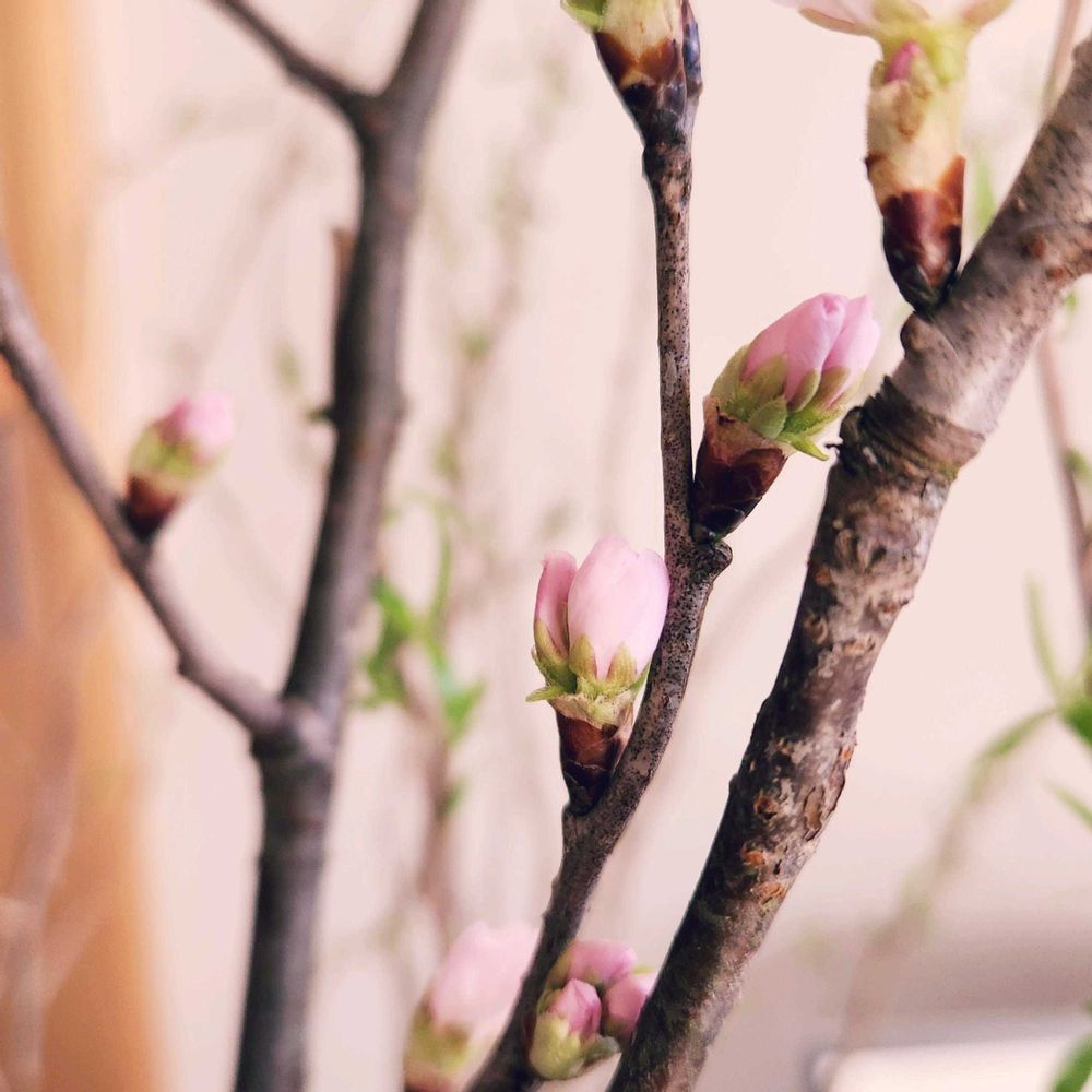 昨年春にご近所さんから頂いた桜の鉢植え。キレイに設えてあるステキな鉢です 初めての冬越しにドキドキ。 (サトザクラと聞いていましたが、河津桜のようです🌸)