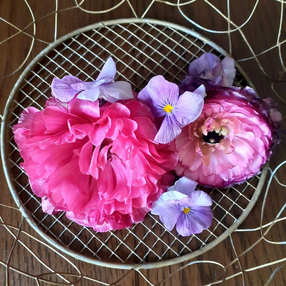 ①最近お迎えしたラナンキュラスアヤリッチとビオラをカットしてきました✂️💞