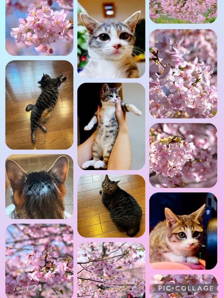 みるくには、河津桜のピンク色が似合うと思ってコラージュしました。