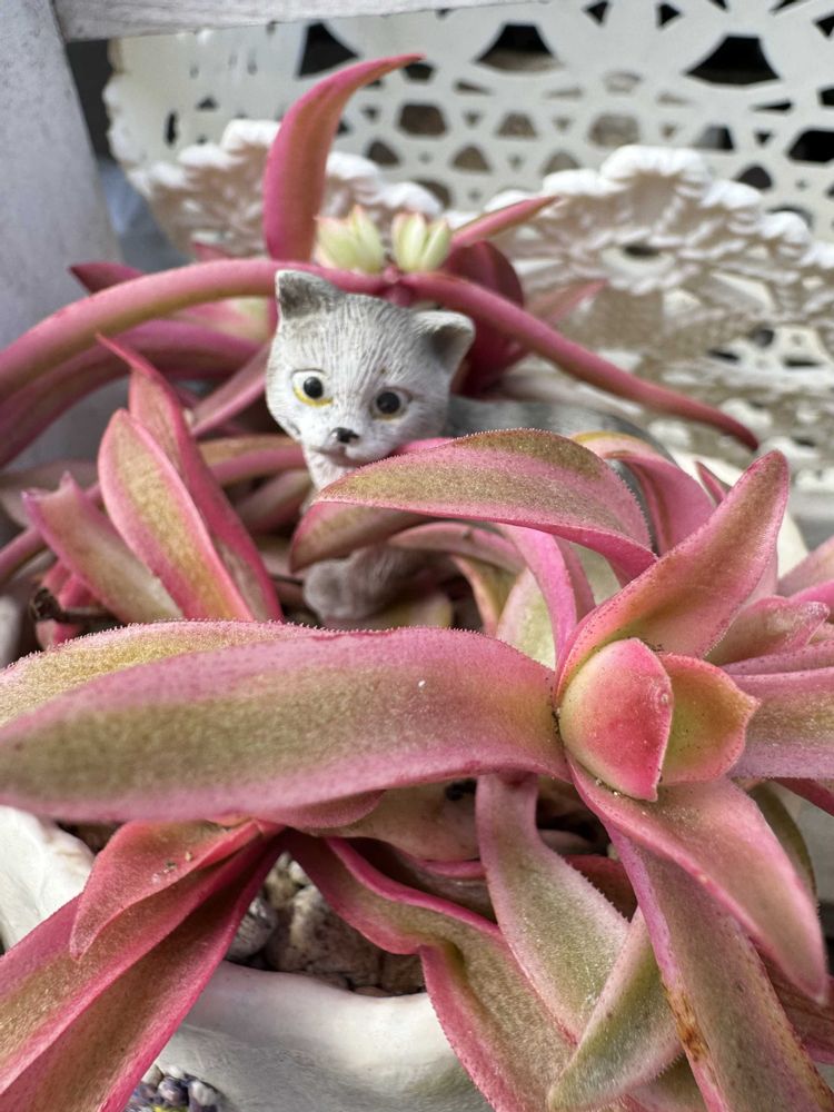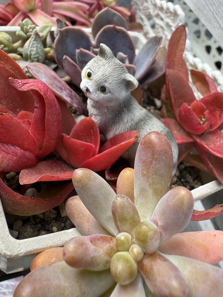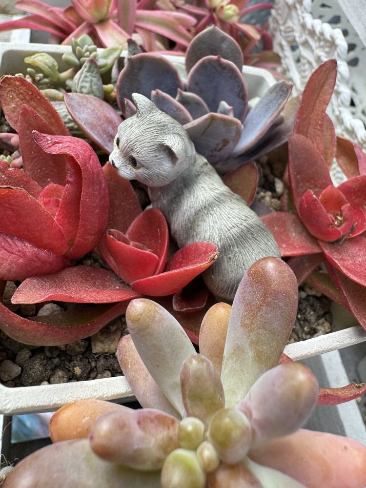 赤い多肉庭に迷い込んで何か探し物してます🐈⬛