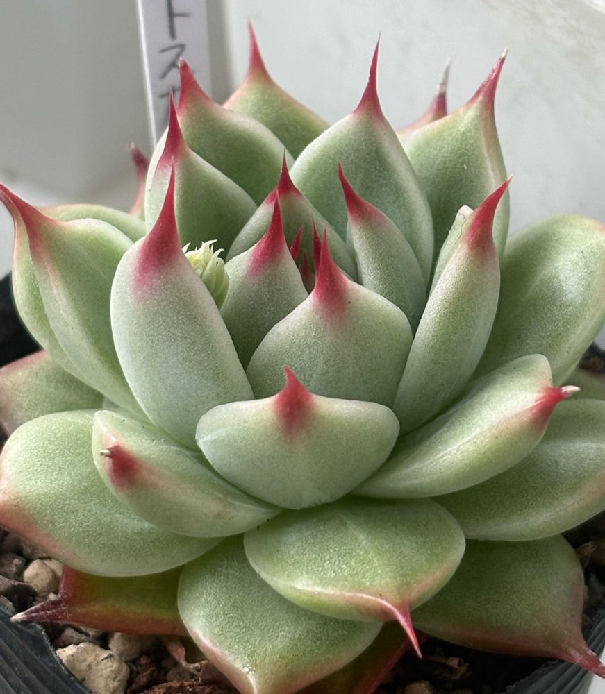 2025年4月にネットでたにたのさんの苗を購入した時におまけでついてきた名無しのエケベリアが面白く育っているので、成長記録を作りました。 この子の名前ご存知でしたら、ぜひ教えてください🙏