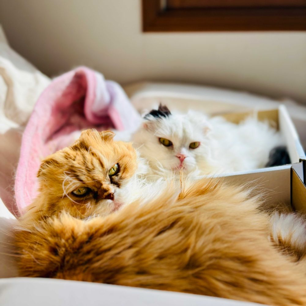 そして、ご実家のシュシュちゃんとフクちゃん😺😺仲良しさんでくっついて可愛いいですね❤