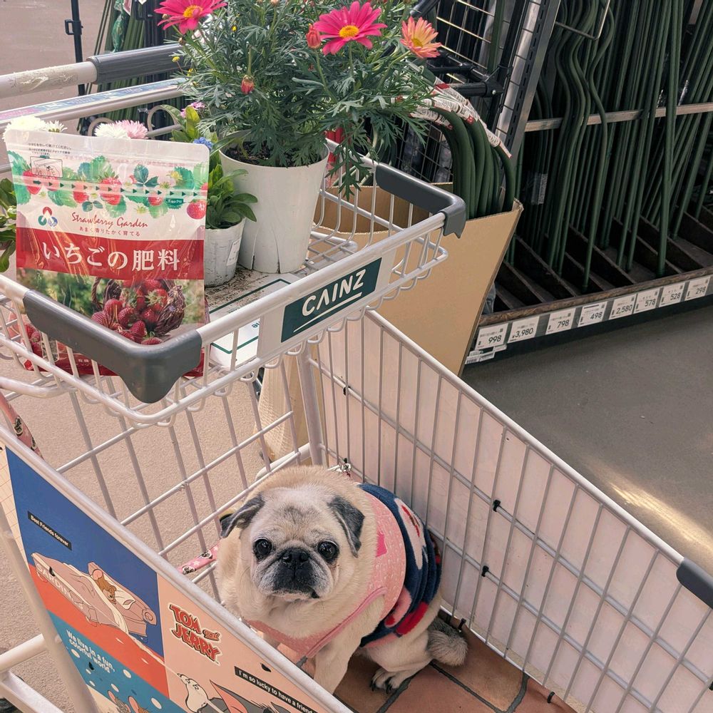 近所の農家さんに散歩中に頂いた苺の苗🍓只今大事に大事に育てています😋先日お散歩してたら農家のおじさんにそろそろ肥料あげてくださいね🍓と言われて慌てて買いに😅苗分けてくれるんだったらついでに肥料もセットでちょうだい🫴とは言えず😂なので今日はせっちゃんと近くのホームセンターへ行ってきたんです🐶