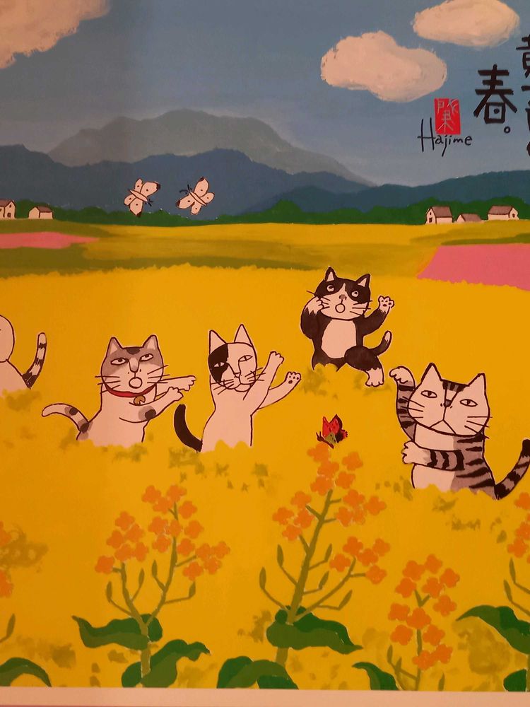 岡本肇さんのにゃんこちゃん達と菜の花のコラボ図がほんわかで癒されました〜