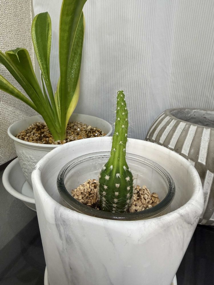 伸びたサボテン🌵光が足らなくて「徒長」した状態です😔