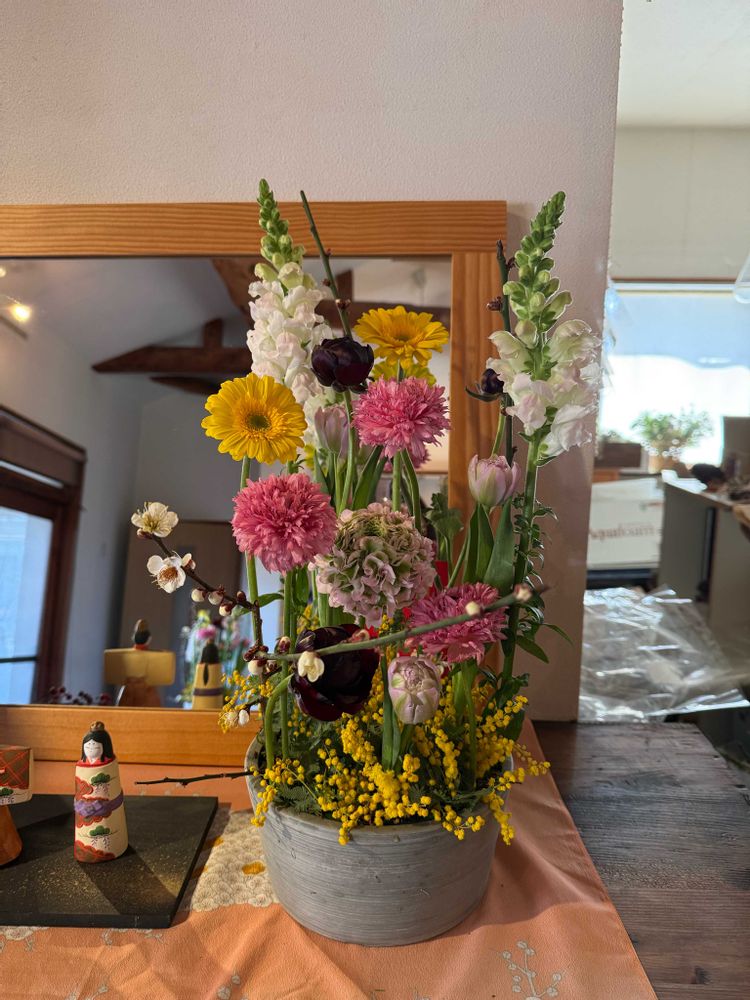 春の生花をアレンジメントしました。