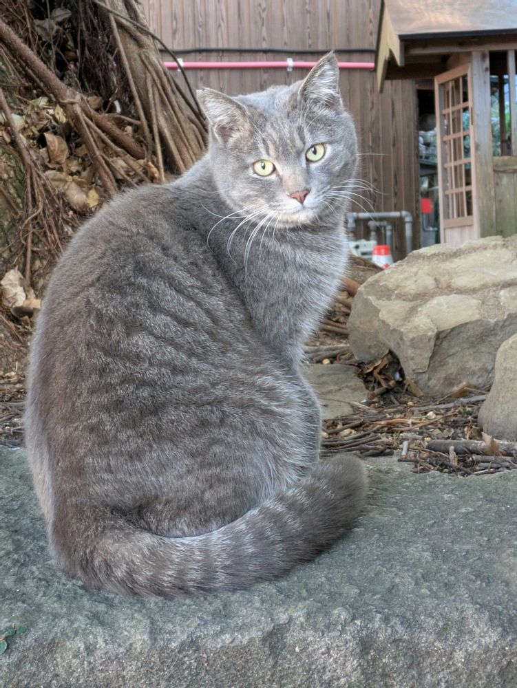 まだまだ明るい中を、長い影法師が階段にゆらめく。