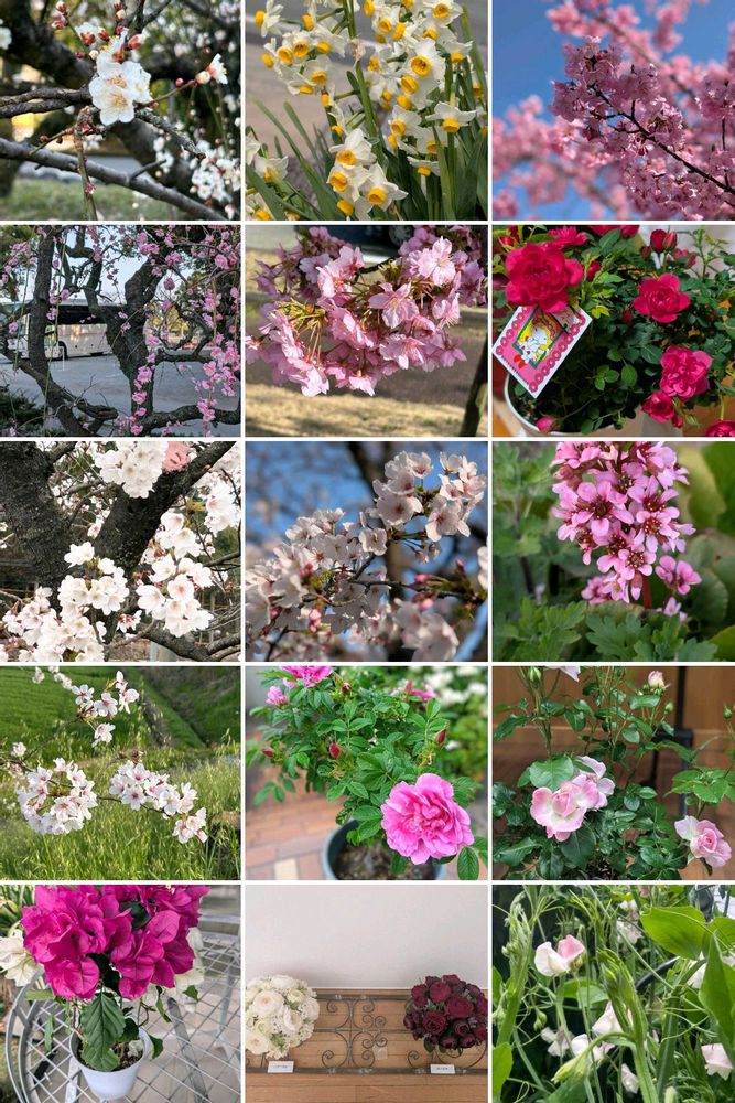 Googleフォトが「自然のブーケ💐2025年の春」と題してコラージュしてくれました🍀😊✨豊明花き市場🌸三重県日帰りバスツアー🚌愛知県豊田市美術館🌹近所の桜並木🌸~♬♬