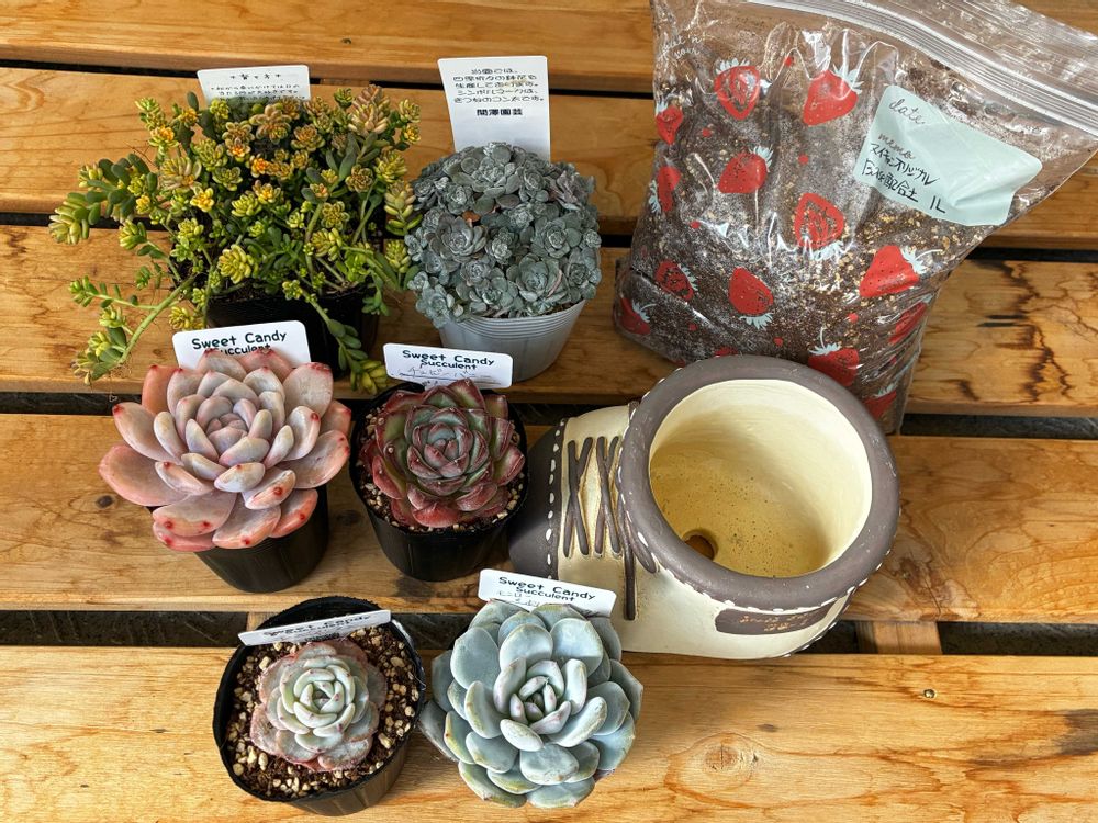 可愛い靴の形の鉢に土と多肉達。持っていない多肉がほとんどで嬉しかった〜。