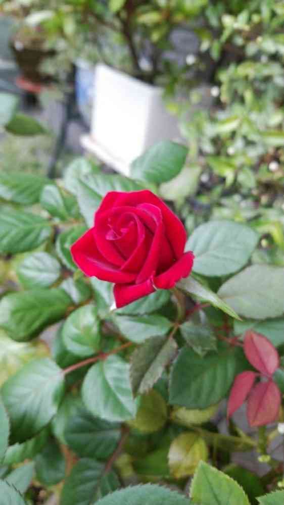 ベランダに出ると赤のミニバラ開いてきました🌹