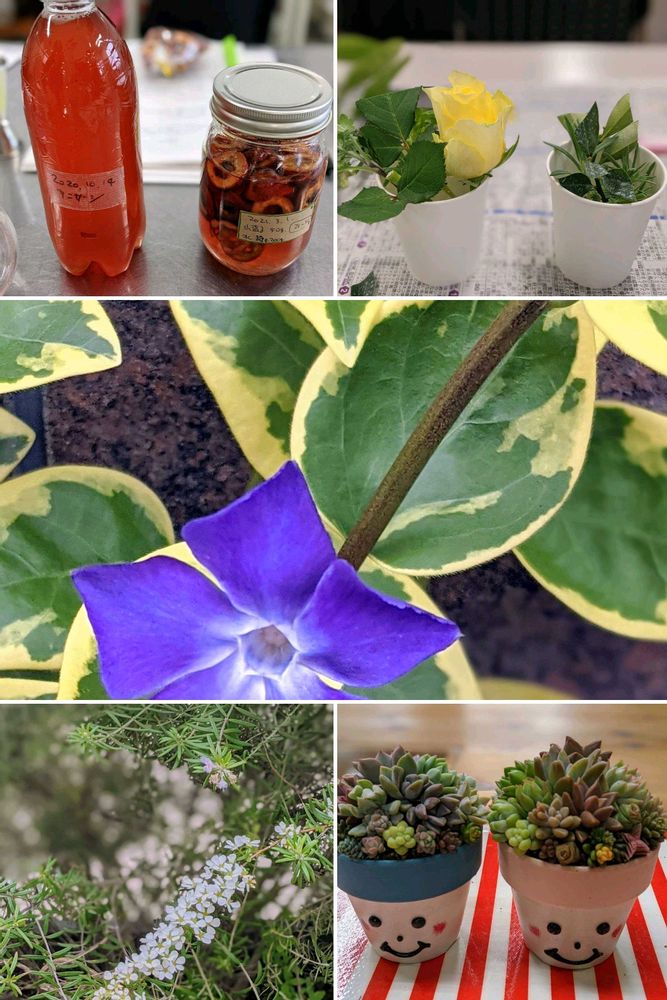 Googleフォトが「豊田市🌿5年前」と題してコラージュしてくれました🍀😊✨おうち薬膳の講座㊧㊤🔴ハーブ教室💛ツルニチニチソウ~♬♬