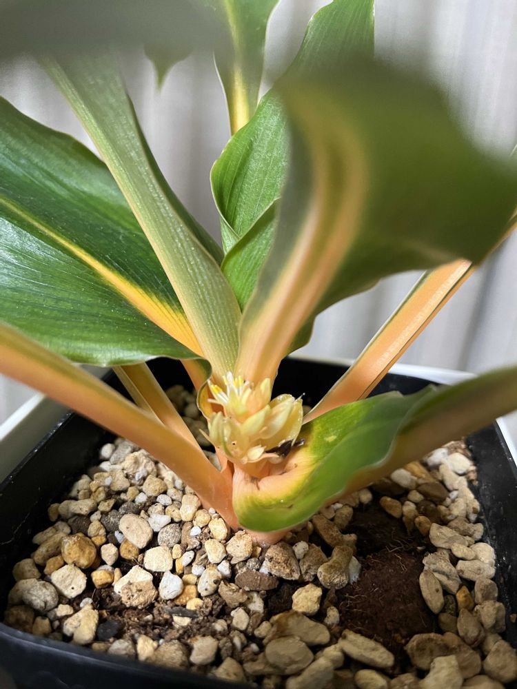 花茎が伸びるわけでもなく、葉の付け根付近でちょこちょこっと咲いているので、近づいてやっと確認できるレベルです😅