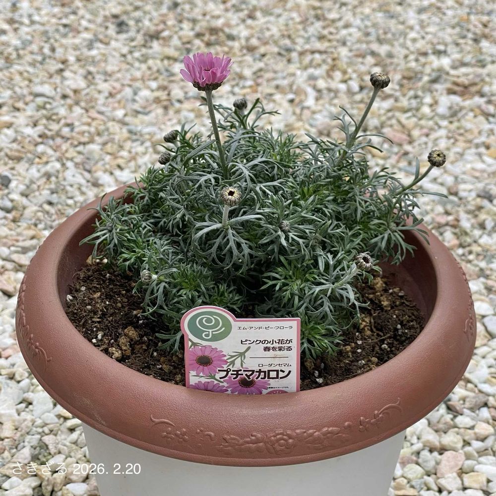 毎年売り場で気になり横目でうかがいつつも通り過ぎてきたローダンセマム🌱今回ご縁があり我が家にやってきてくれました✨この子は開花期も長く強い子なんですてね🤩生長がとても楽しみ🐒🎶多方面含むアドバイスお待ちしております🐵💕