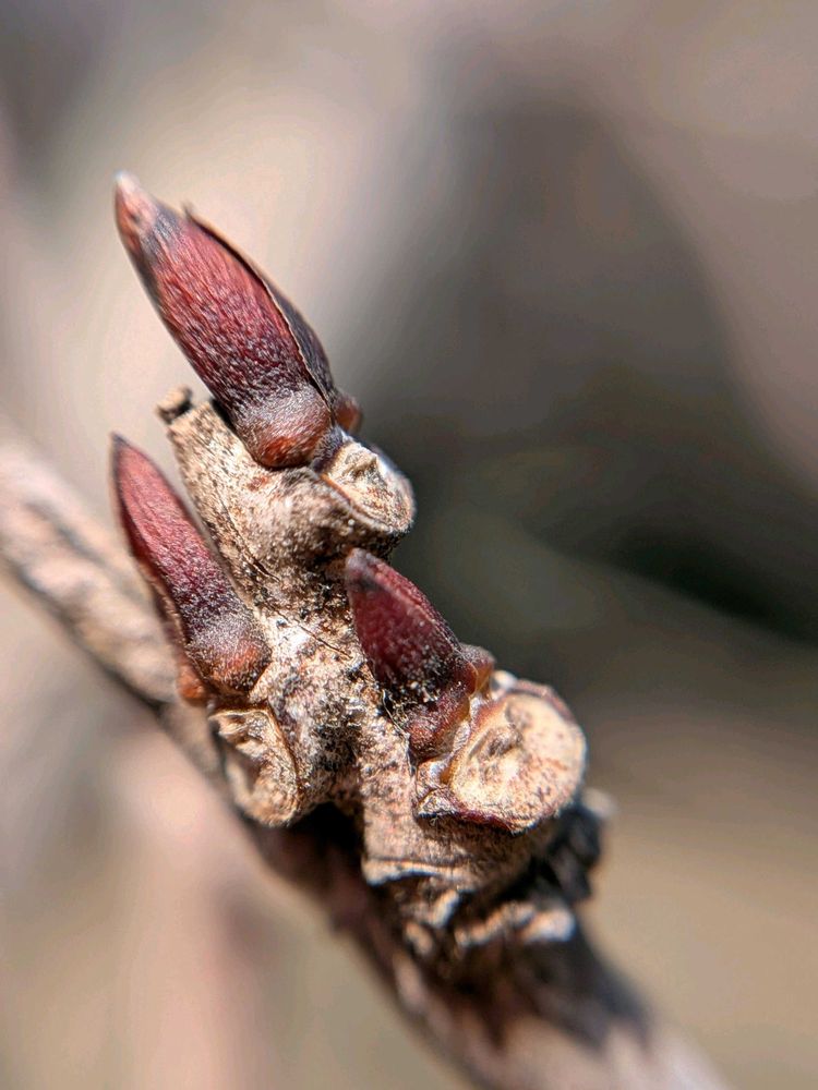三角帽子のフジの冬芽はいつ見ても面白いです😍