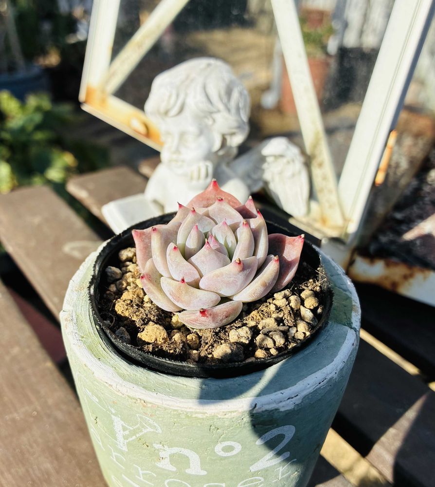 2025年4月にネットでたにたのさんの苗を購入した時におまけでついてきた名無しのエケベリアが面白く育っているので、成長記録を作りました。 この子の名前ご存知でしたら、ぜひ教えてください🙏