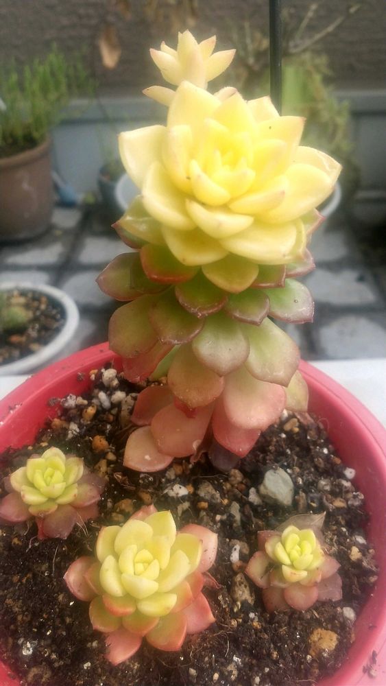 2025年4月にネットでたにたのさんの苗を購入した時におまけでついてきた名無しのエケベリアが面白く育っているので、成長記録を作りました。 この子の名前ご存知でしたら、ぜひ教えてください🙏
