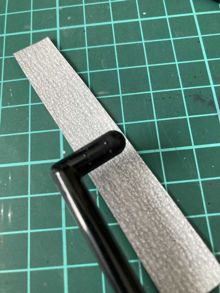 どうも悪さをしてる出っ張り部分を神ヤスリ240番で除去して、接着部分は結局ガムテープで補強…