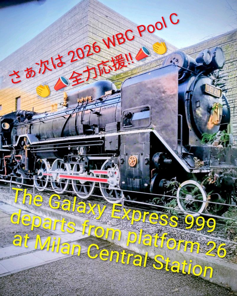 銀河鉄道999は、これよりミラノ中央駅26番線を出発後、WBC Pool Cの『侍JAPAN』を全力応援📣するために東京の後楽園へ向かいます。なお、ミラノのお土産をお買い忘れの方は、Galaxy Expressの通販をご利用ください。配送料無料でお届けします…👨✈️」