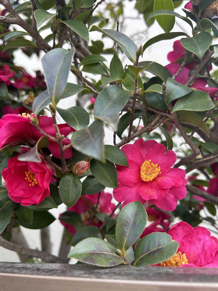 昨年春にご近所さんから頂いた桜の鉢植え。キレイに設えてあるステキな鉢です 初めての冬越しにドキドキ。 (サトザクラと聞いていましたが、河津桜のようです🌸)