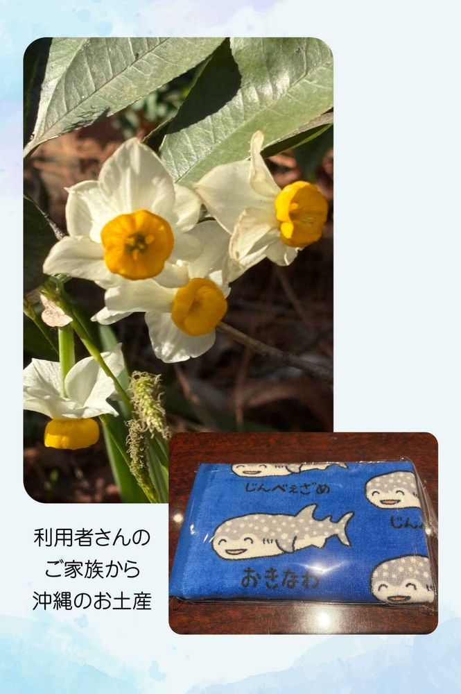 1️⃣牧野記念庭園の【スイセン🤍】&沖縄のお土産😆🎵本業在宅医療🩺重度訪問介護のお仕事で12日(木)にご利用さんのご家族が丸一日、お留守にして沖縄に出かけられて…私は、独り立ち2日目、入浴サービスも2回目…訪看(訪問看護師)と入浴サービスと私(医療的ケアのヘルパー)との連携というかコンビネーションというか…利用者さんが入浴する際、呼吸器を一時外します…外す役が私で外したら訪看に渡す〜という息を合わせるお仕事です༄༅༄༅༄༅༄༅༄༅