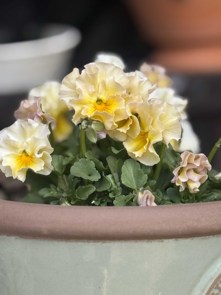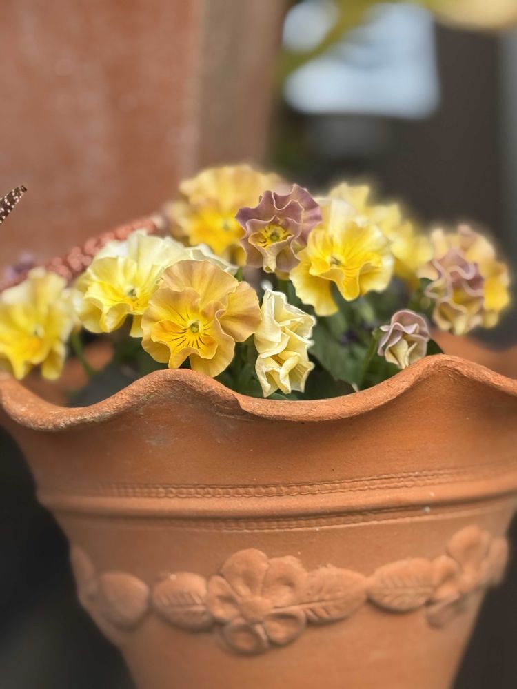 春の訪れを感じて、楽しい歌声を奏でるビオラや、オステオスベルマム(⌒‐⌒)🎵