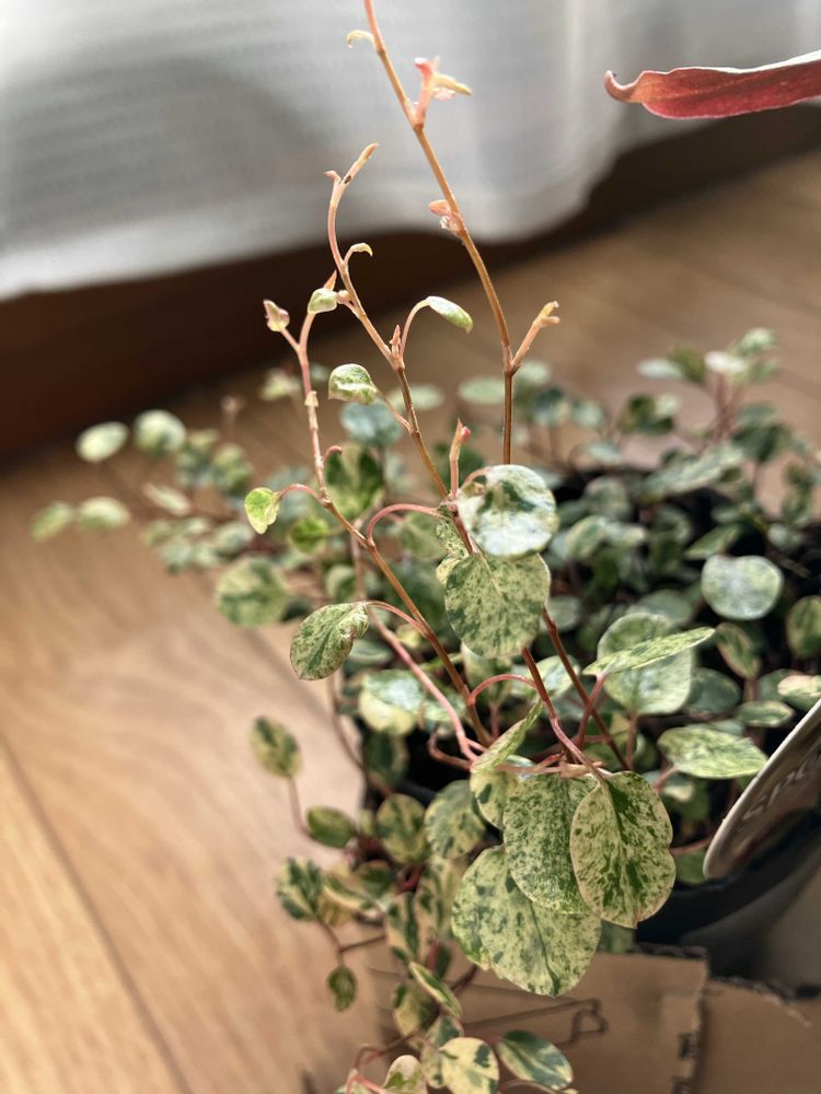 斑入りの葉がすごくいいんですが、伸びてきた茎が少しピンクなのもかわいい😍