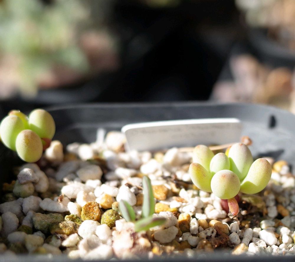 2025年4月にネットでたにたのさんの苗を購入した時におまけでついてきた名無しのエケベリアが面白く育っているので、成長記録を作りました。 この子の名前ご存知でしたら、ぜひ教えてください🙏