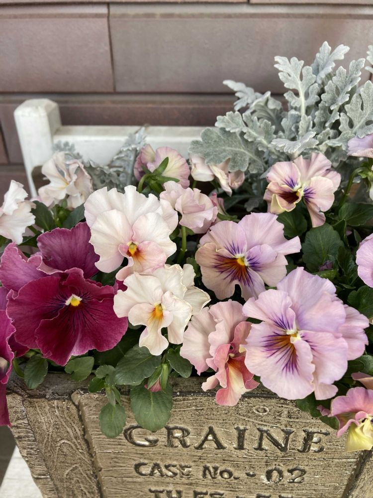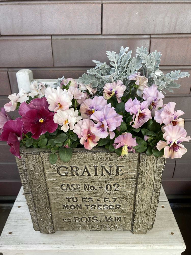 年明けに出会い、春らしい2株を寄せ植えにしました🧺