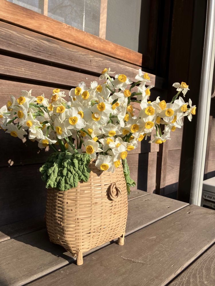 籠に生けられた水仙も美しい
