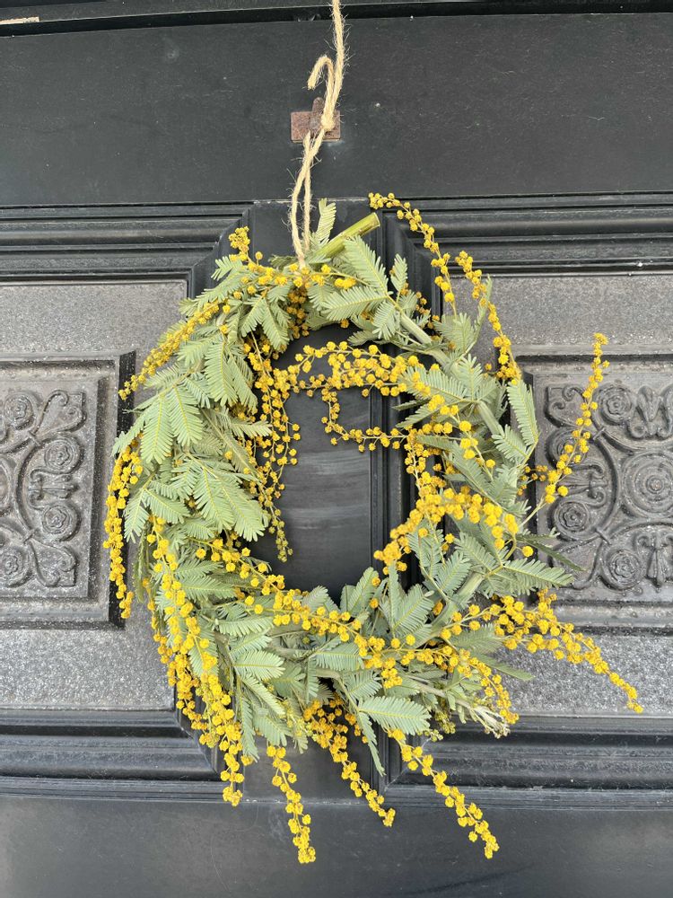 玄関にミモザリース付けてみました!さりげなく。花粉症なので🤣