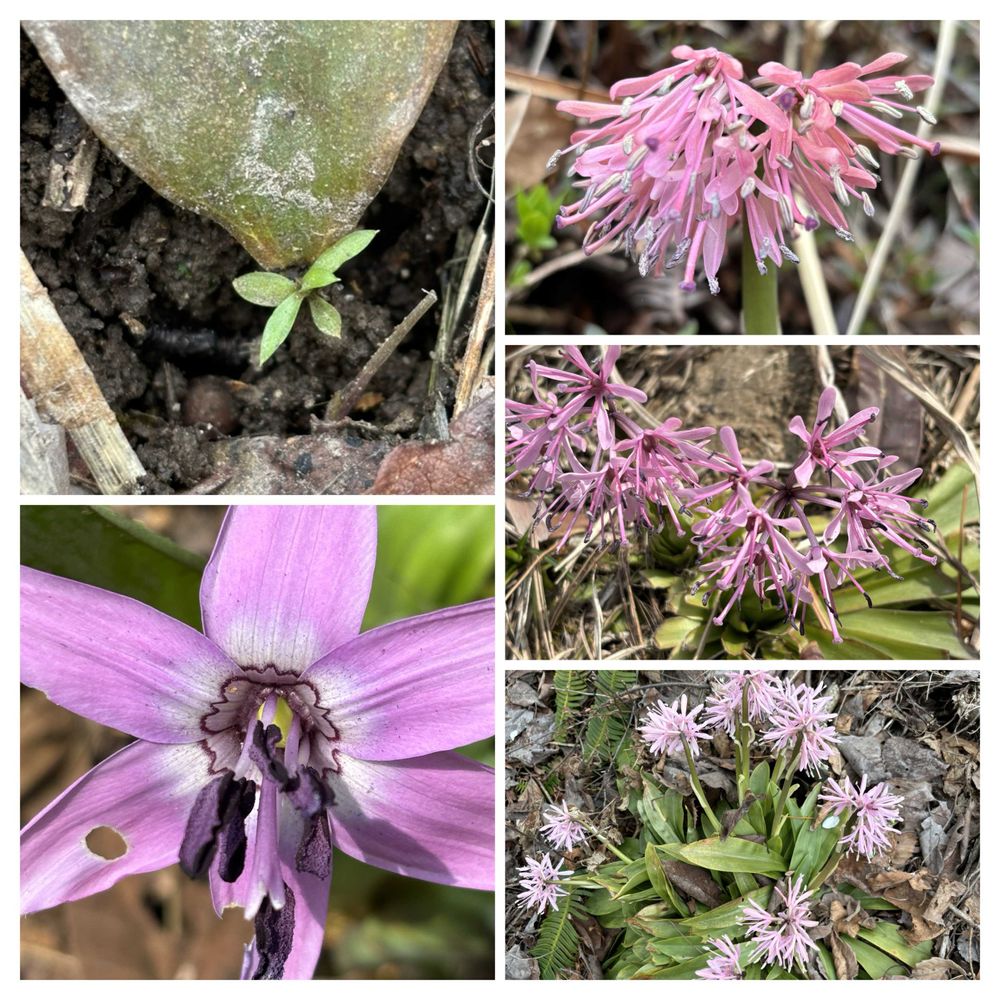 左下↙️は、同じ時期に咲くカタクリの花。まだ開き始めたばかりで花弁が開いた状態でした。
