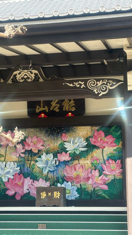 数年前にお寺の前の住職さんが美大生に描かせてて、派手〜〜と思ったのですが、こんな綺麗なハスの花🌸のある所で皆幸せかもと最近思いました🤭💞