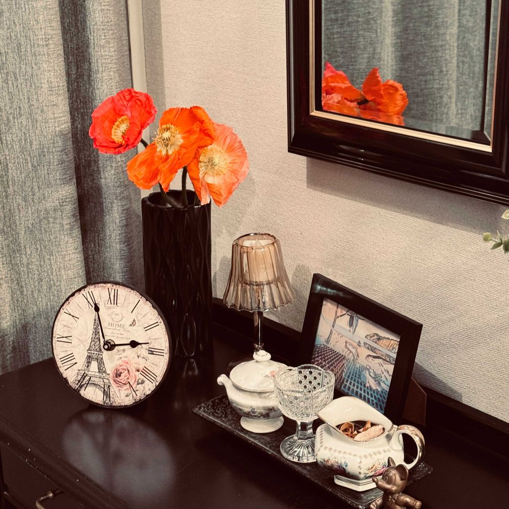 インテリア仏壇「鏡壇ミラリエ」「鏡壇ミロワ」に今日(2/23)の誕生花の「ポピー(芥子)」 を飾ってみました。