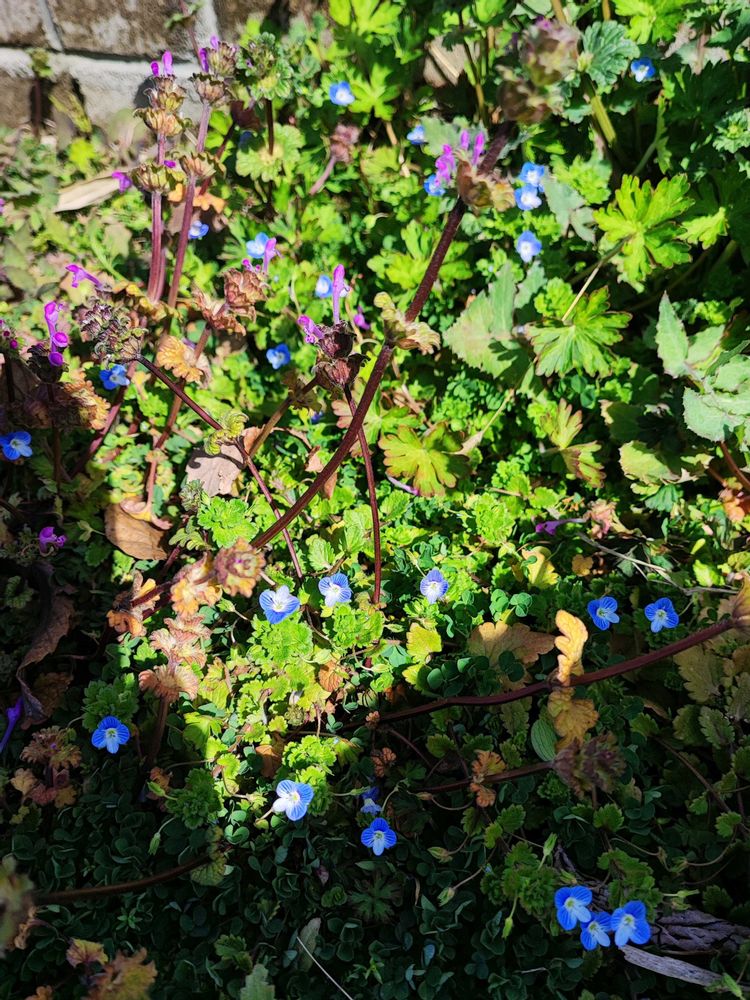まい@うずらとひじきさんのオオイヌノフグリ,ストック,ヒメリュウキンカの投稿画像