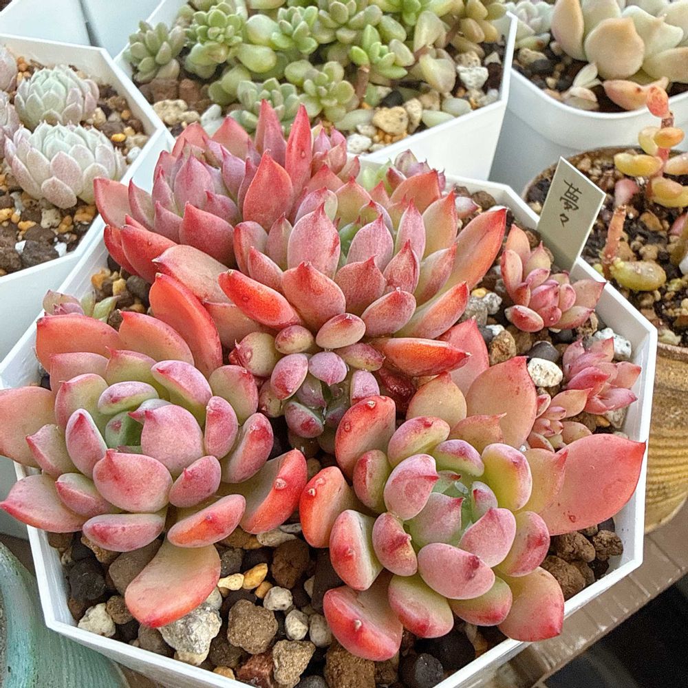 2025年4月にネットでたにたのさんの苗を購入した時におまけでついてきた名無しのエケベリアが面白く育っているので、成長記録を作りました。 この子の名前ご存知でしたら、ぜひ教えてください🙏