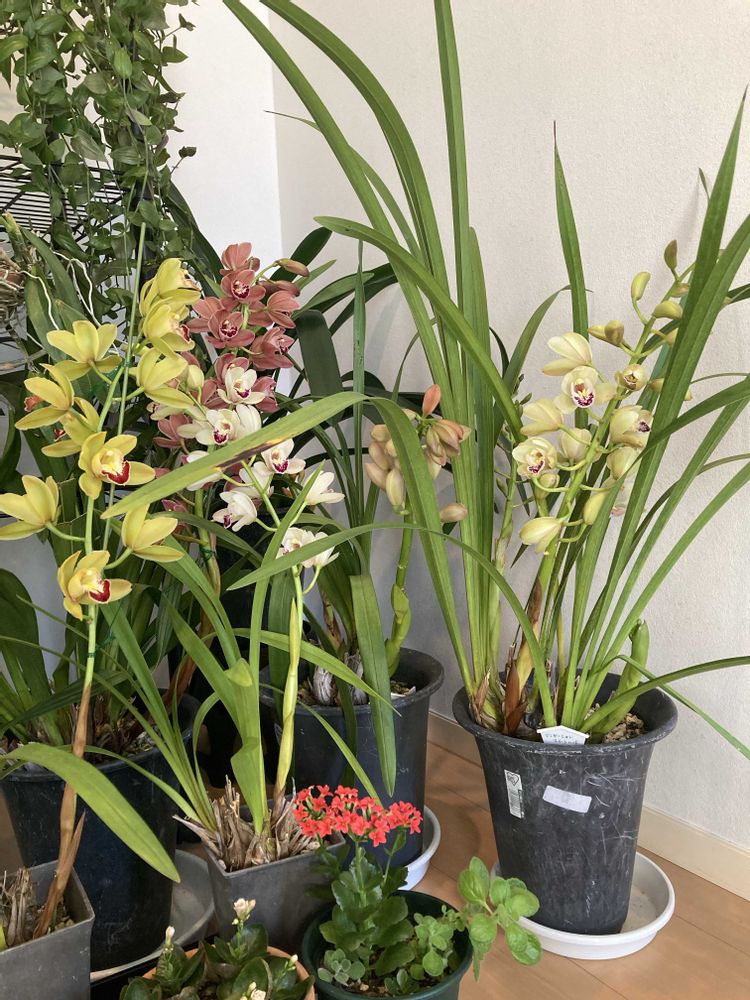 上まで咲いた3本④は写真を撮った後切り花にして実家へ持って行きました😊その前にあげたシンビジウムも花瓶で綺麗に咲いていました🎵