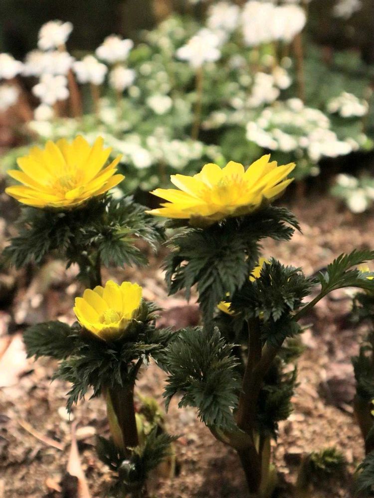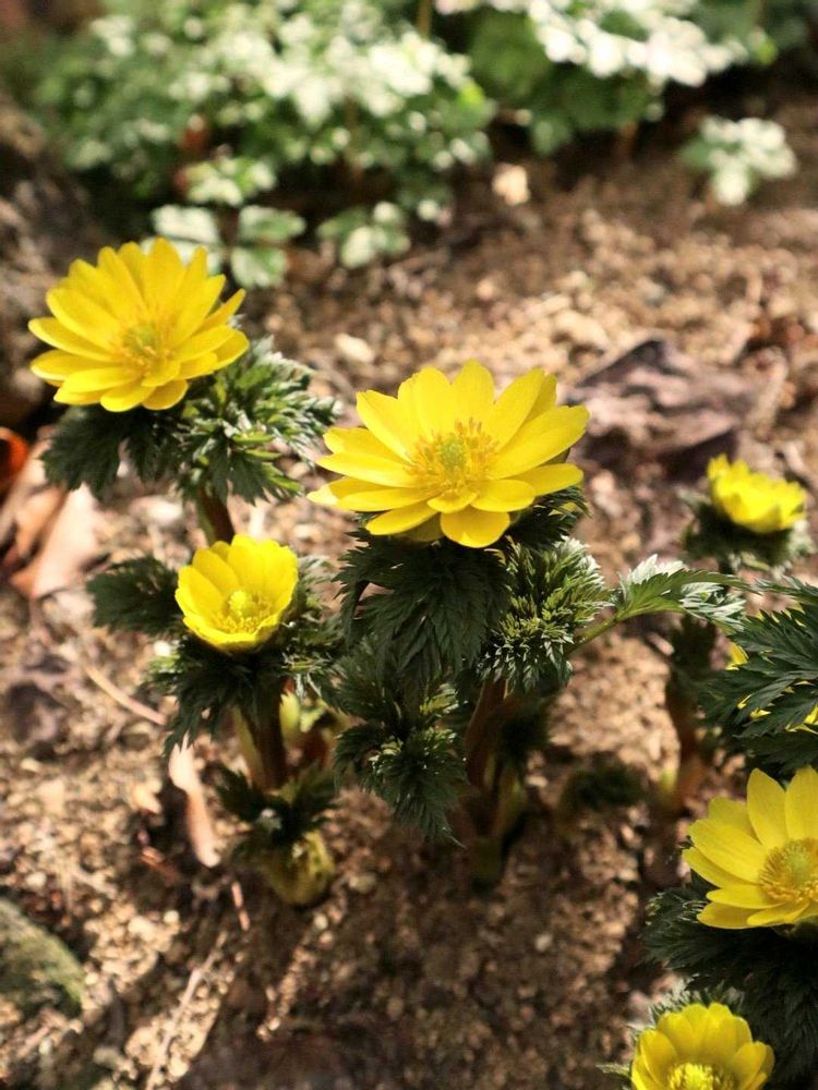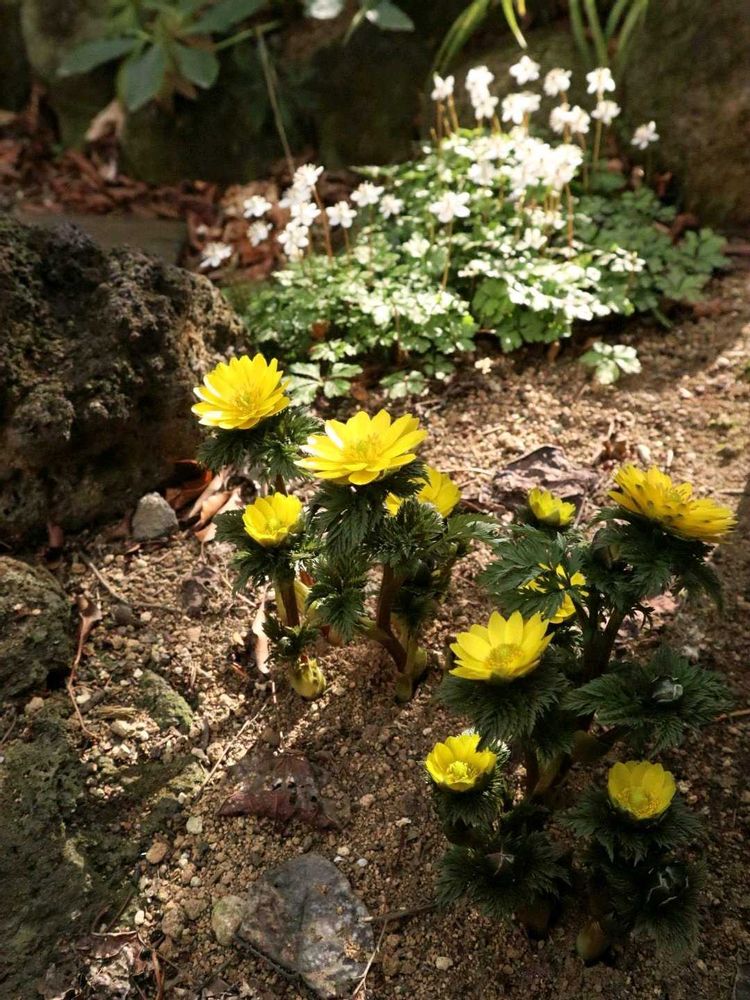 前日からのバイカオウレンと福寿草の満開の庭に憧れます✨