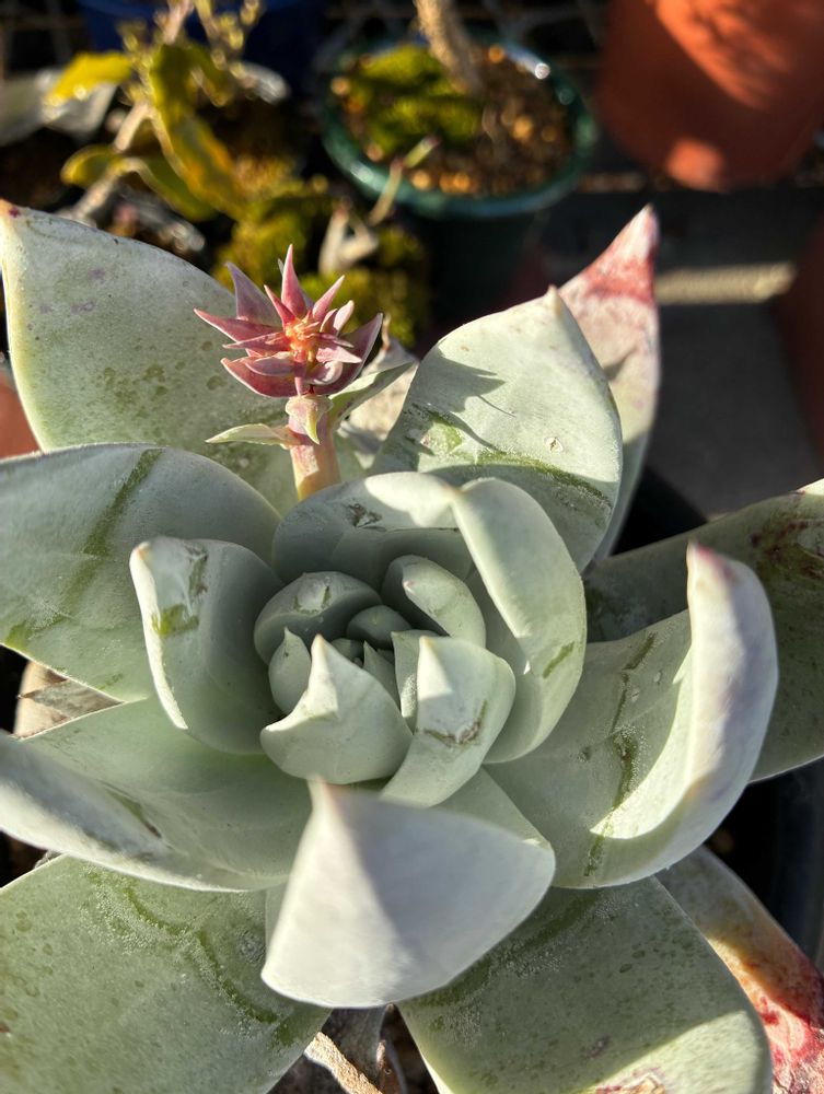 2025年4月にネットでたにたのさんの苗を購入した時におまけでついてきた名無しのエケベリアが面白く育っているので、成長記録を作りました。 この子の名前ご存知でしたら、ぜひ教えてください🙏