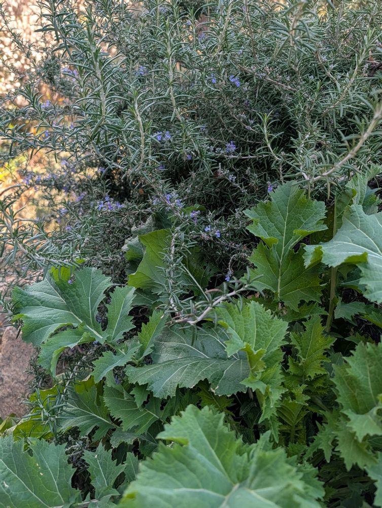 二枚目、ローズマリーの下に生えてきた芥子菜。緑肥にちょうど良いのでこのあと刻んで漉き込みましたー!