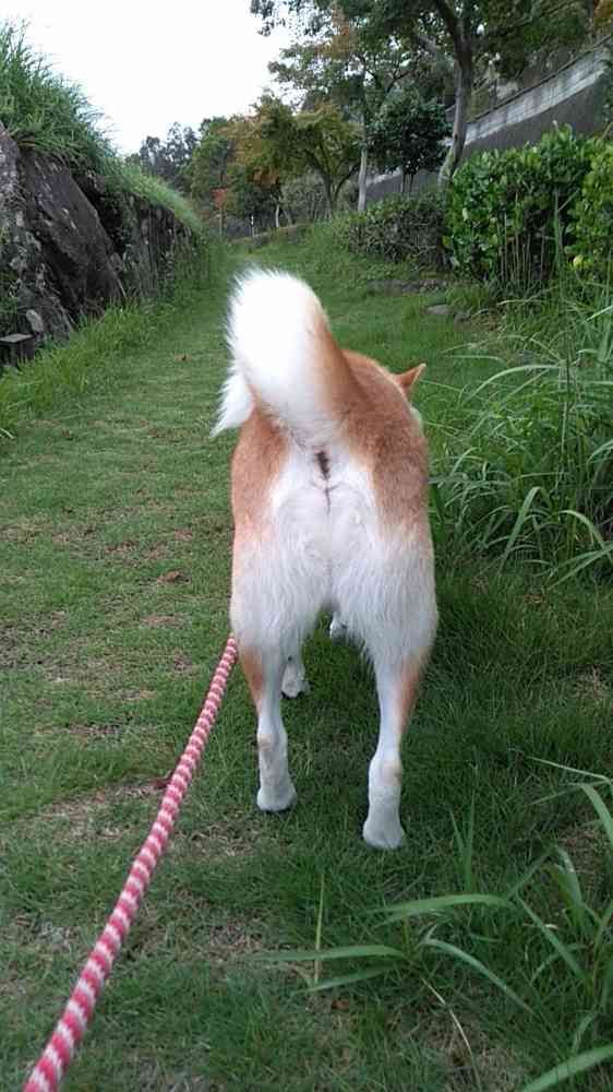 夜やけん解禁?じゃけど、いつもこたろうのお尻を見ながら歩くのです😁 なぜなら💩が出るのを待っているから。