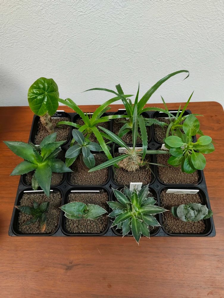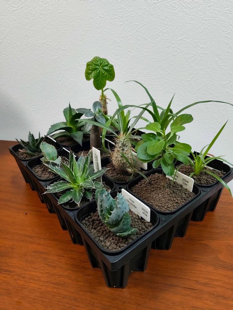 鉢統一してトレイに入れてみると我が実生苗も売り物のようだ。