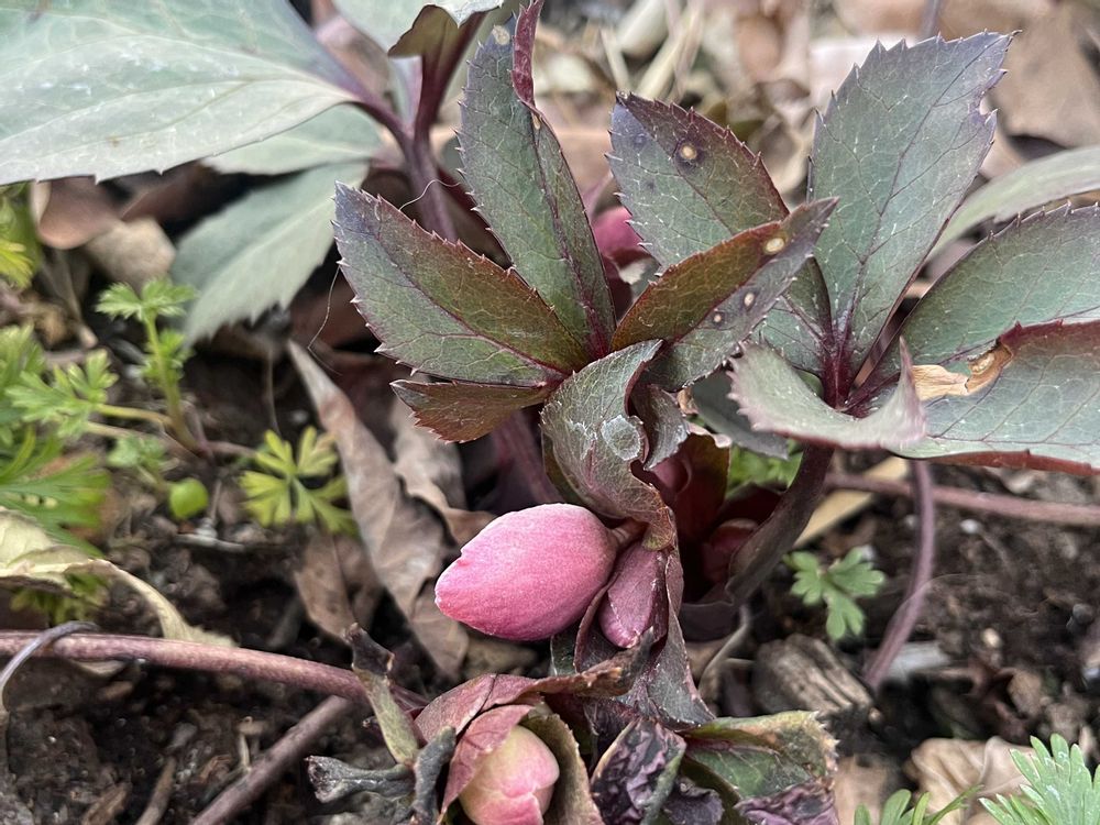2枚目はこちらも待ちかねたクリスマスローズピンクフロストの蕾🩷