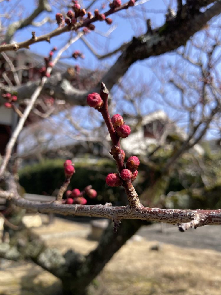 この陽気に咲いているか気になって見てきました。ご覧のようにまだ蕾でした。