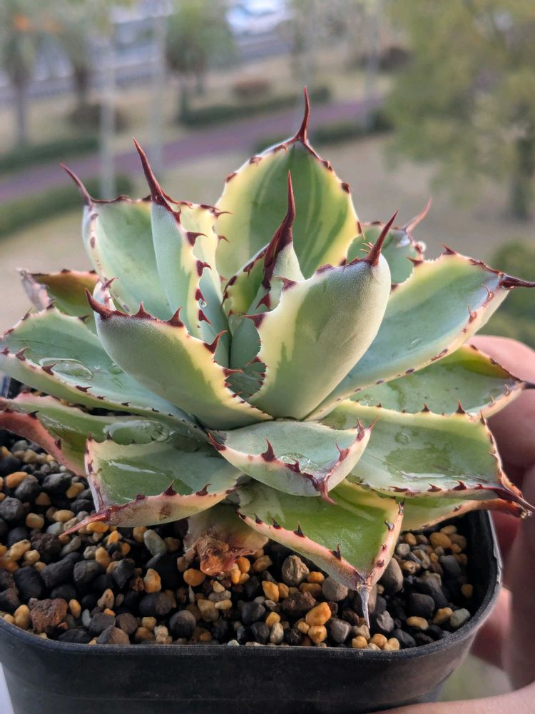 ①吉祥冠錦さん。1年越してやっと植え替え。凄い根鉢になってました。今度は深鉢にしたのでしばらく大丈夫?